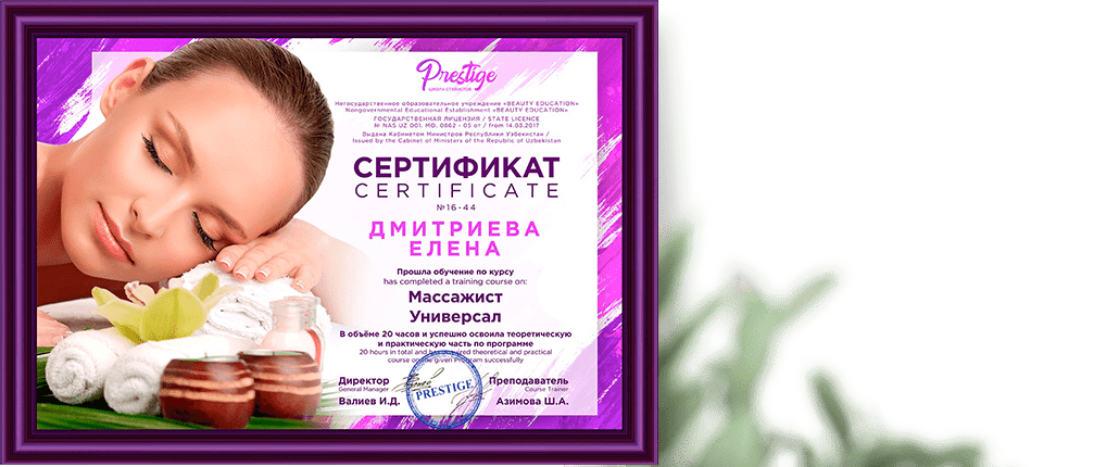 Выдается международный сертификат, позволяющий заниматься практикой по всему миру.