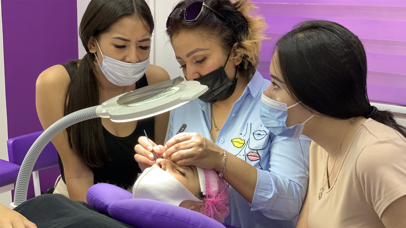 Ресницы, пинцеты, патчи и весь материал необходимый для обучения, предоставляется бесплатно